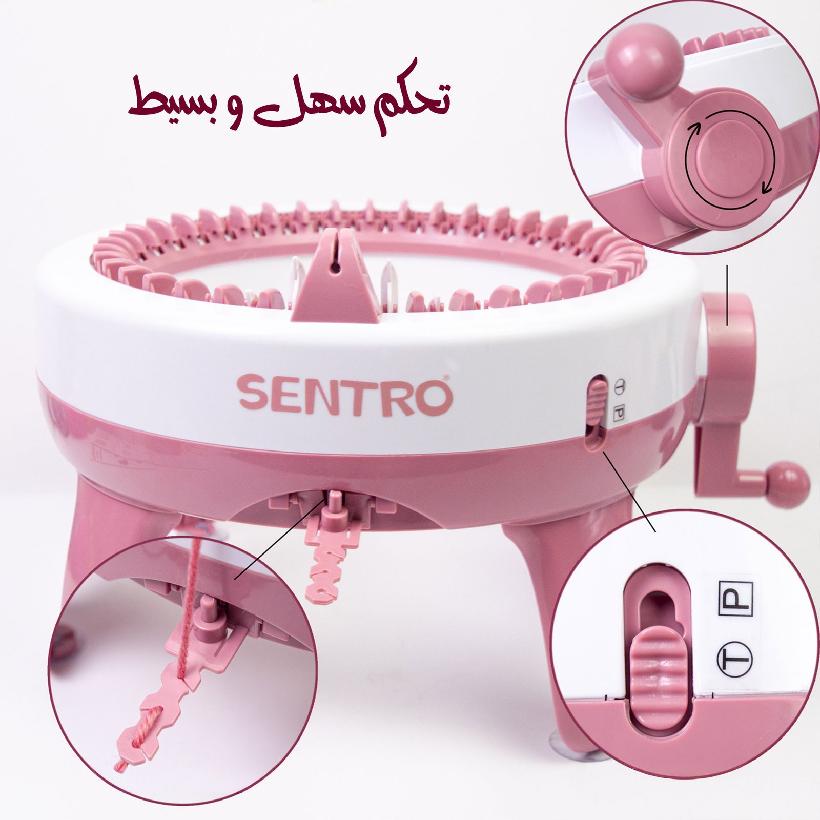 الخاصية حياكة دائرية ومسَطحة، مقبض دوار، مثبت طاولة