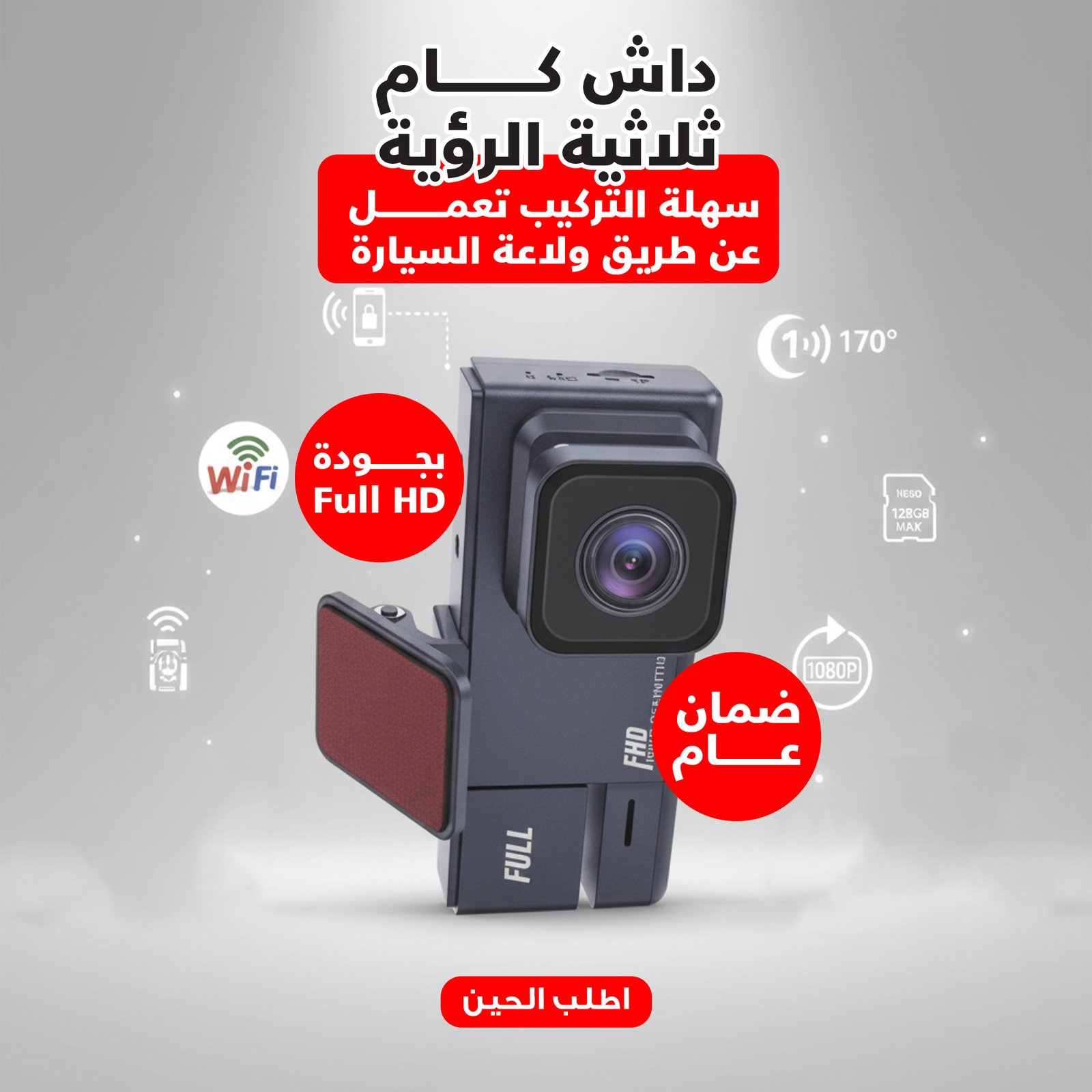 داش كام ثلاثية الرؤية بجودة Full HD بضمان عام سهلة التركيب تعمل عن طريق ولاعة السيارة