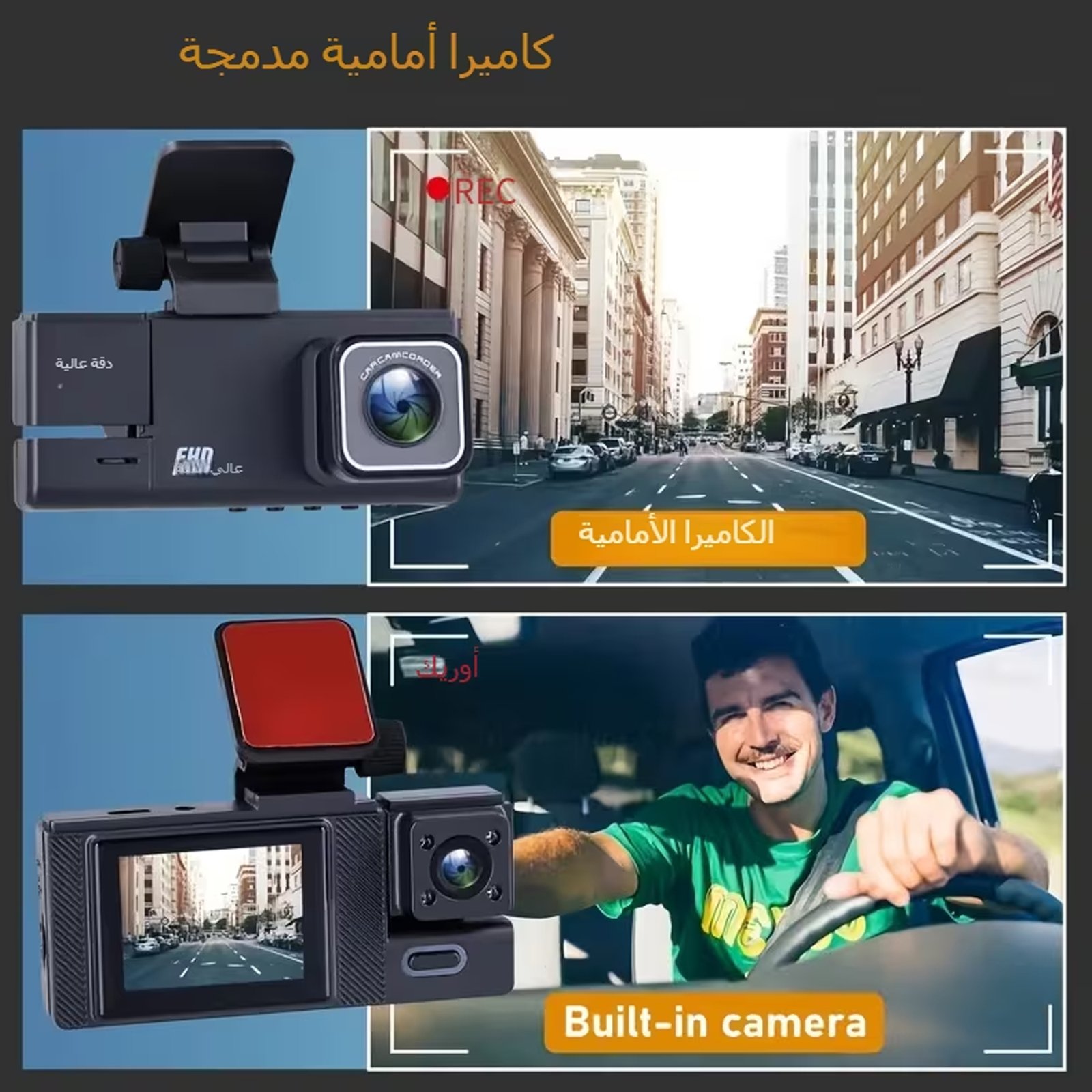 كاميرا أمامية وخلفية ,وداخلية، تغطي الطريق من كل الزوايا.