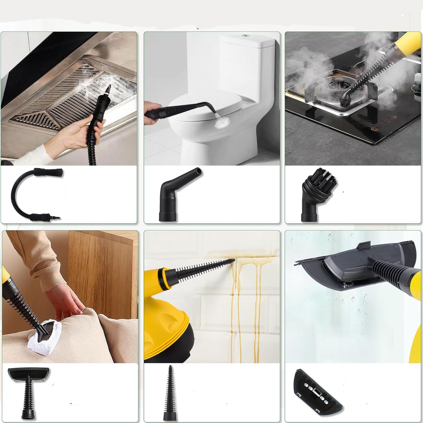 منظف بخاري قوي وسريع يسخن في 3 دقائق فقط، ليمنحك تنظيف فعال دون الحاجة للمواد الكيميائية. مناسب للأسطح، المفروشات، السيارات، والأدوات مع القضاء على البقع والآفات.